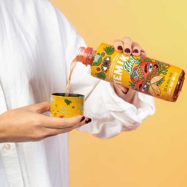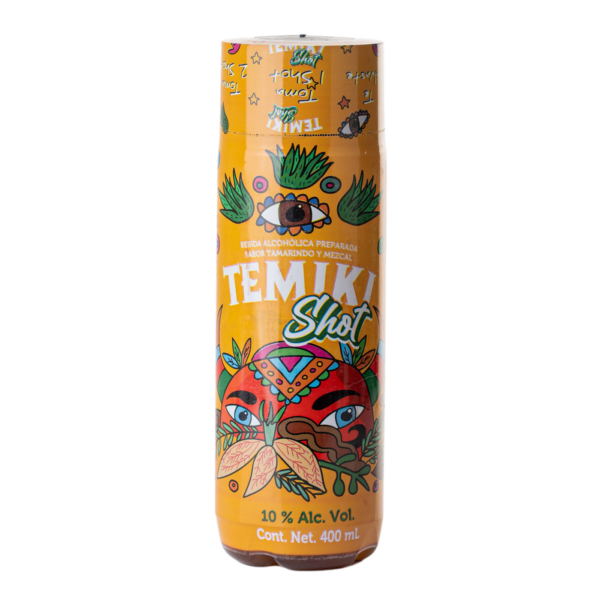 Descripción: Bebida alcohólica preparada sabor Mezcal Tamarindo, con 10% Alc. Vol. en una nueva presentación. Temiki Shot te ofrece un envase renovado, reciclable, y resellable, con una tapa multifunción.